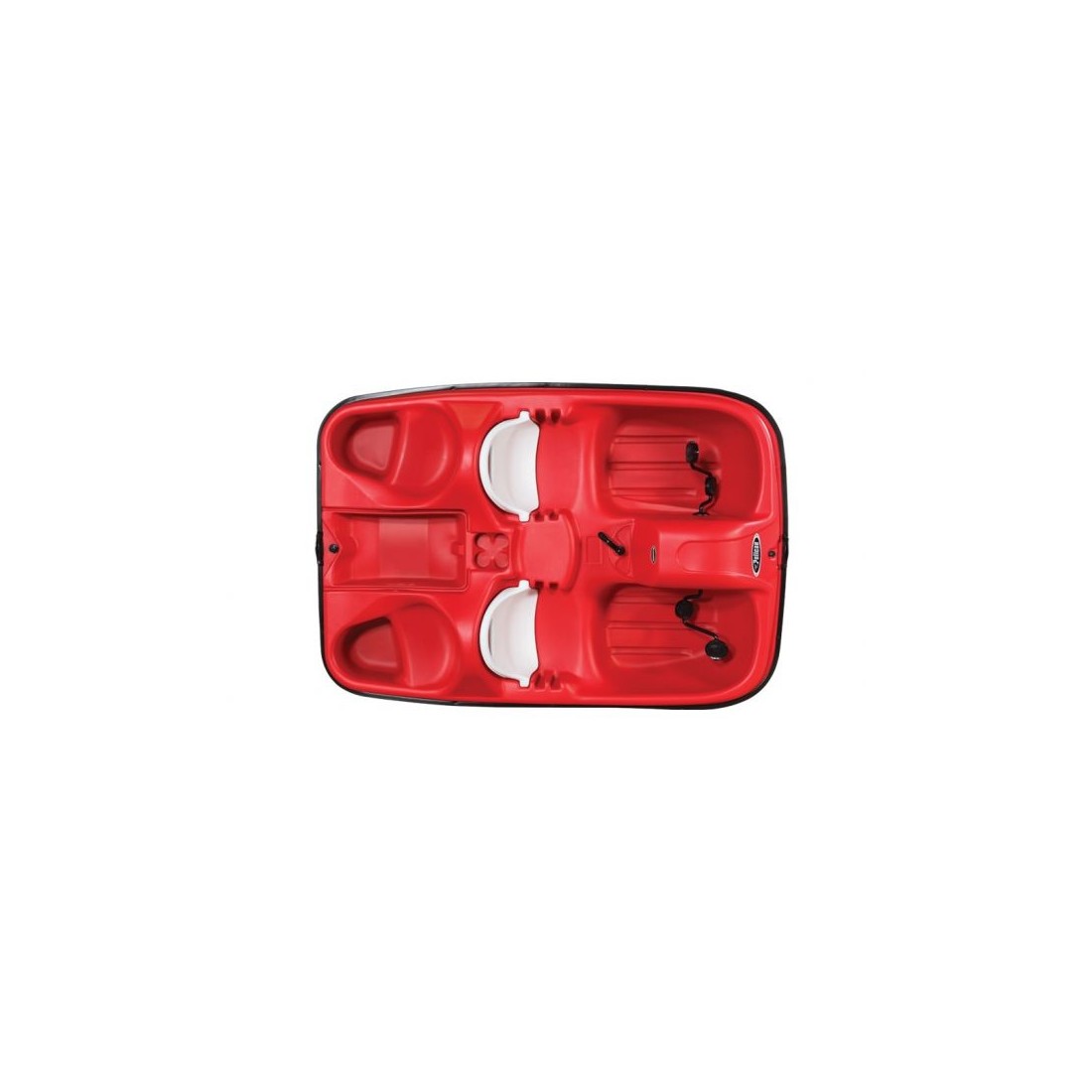 Rower jest bardzo wygodny, posiada wygodne i ergonomiczne siedzenia. Dodatkowo ( opcja) baldachim chroni od słońca i deszczu. Posiada wbudowaną skrytkę na lodówkę turystyczną z twardym przykryciem ( opcja) oraz uchwyty na napoje. Rower jest wykonany z bardzo trwalego i odpornego na przebarwienia tworzywa RAM