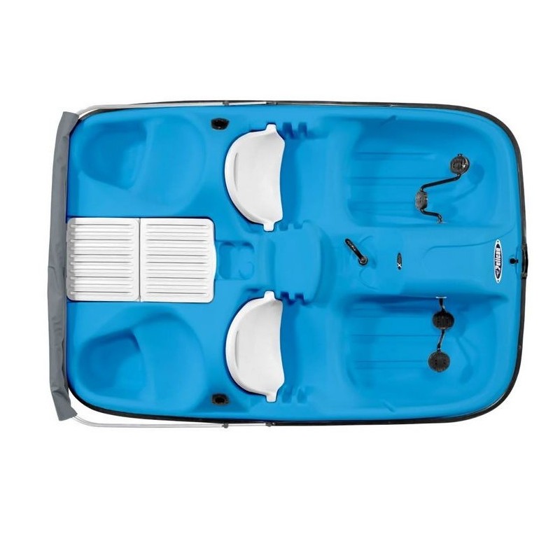 Rower jest bardzo wygodny, posiada regulowane i rozkladane siedzenia. Dodatkowo baldachim chroni od słońca i deszczu. Posiada wbudowaną skrytkę na lodówkę turystyczną z twardym przykryciem oraz uchwyty na napoje. Rower jest wykonany z bardzo trwalego i odpornego na przebarwienia tworzywa RAM-X