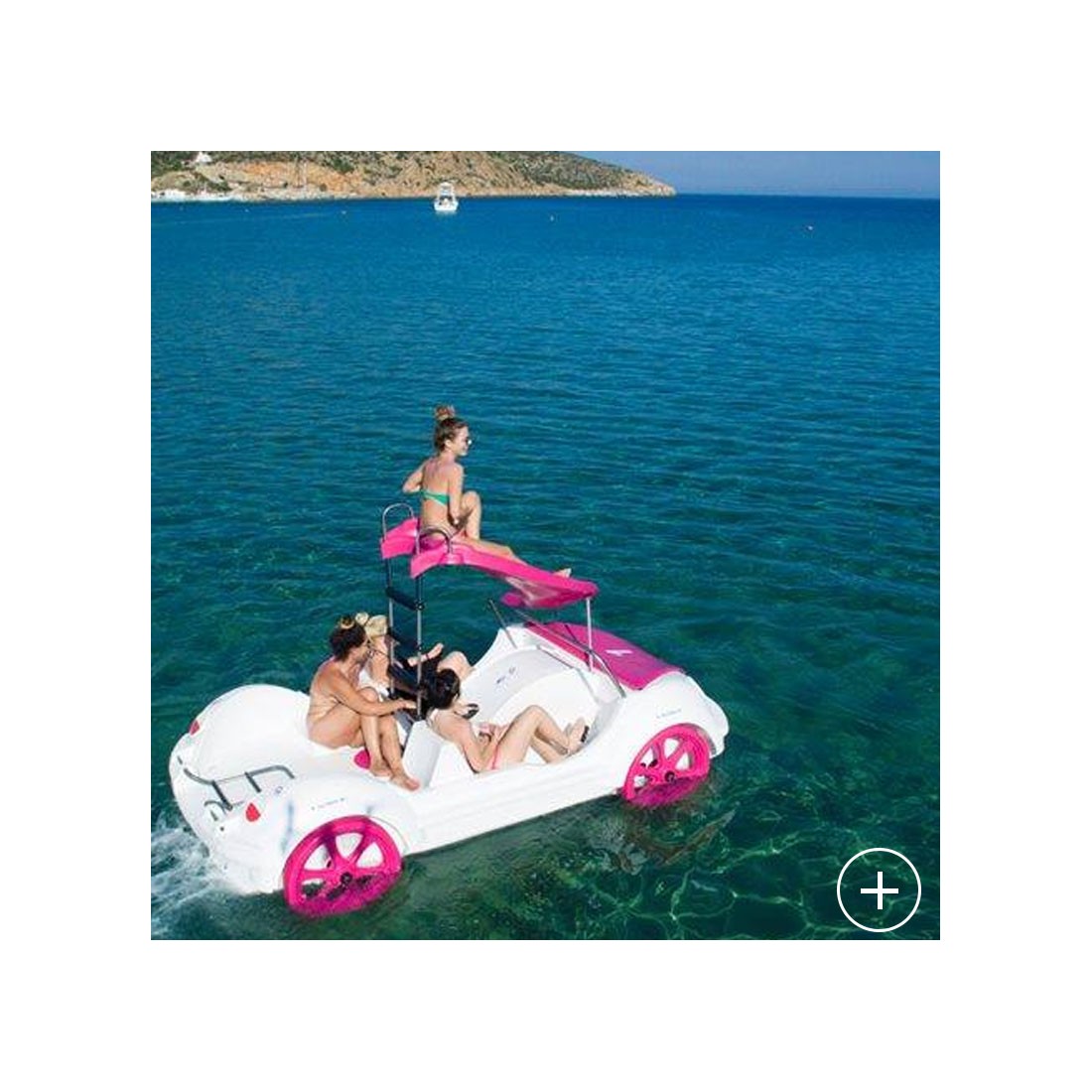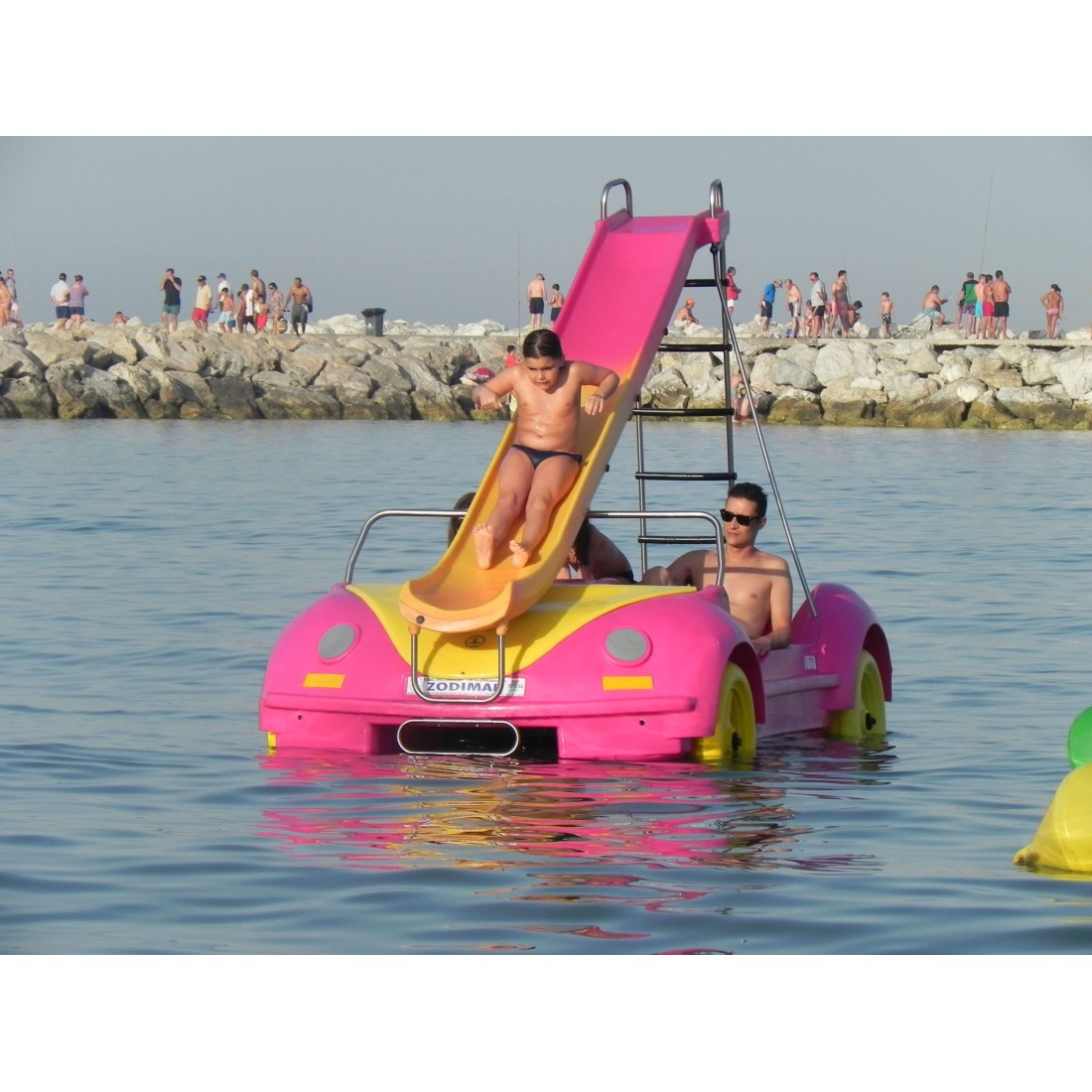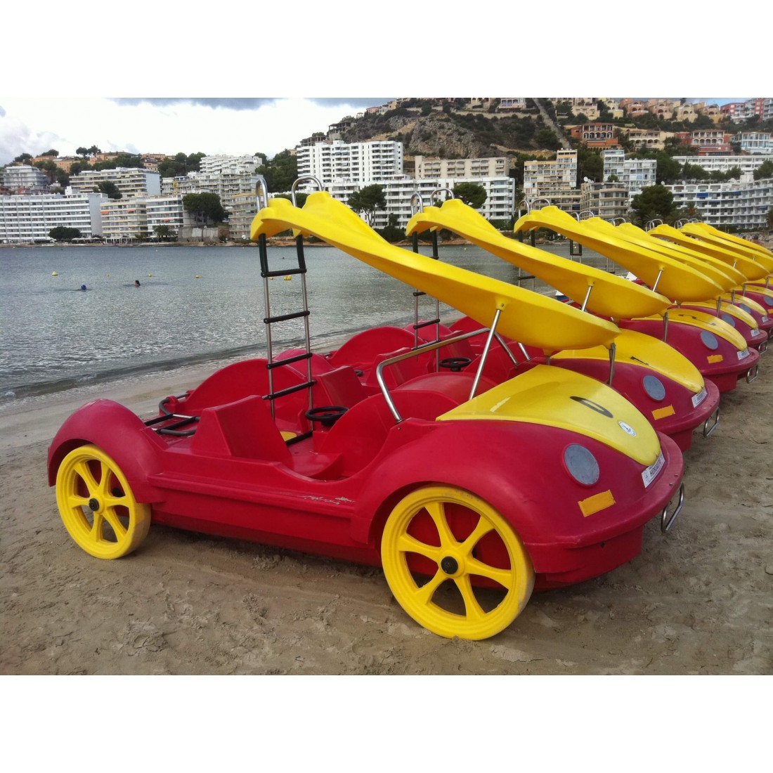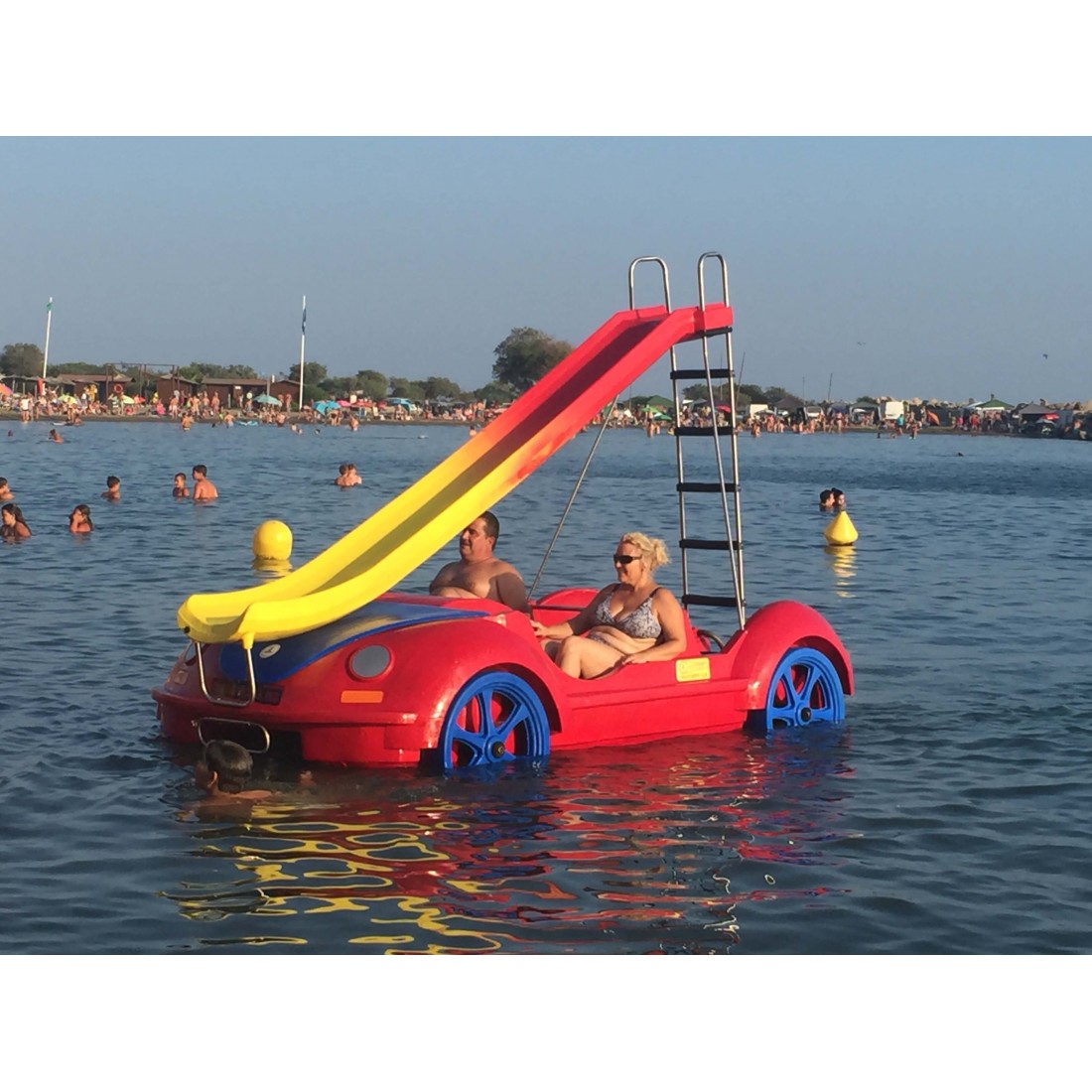 Rower wodny w kształcie samochodu VW Beetle wykonany w innowacyjnym systemie produkcyjnym z trójwarstwowego polietylenu typu sandwich. Jest to materiał o wysokiej odporności na uderzenia i ścieranie, odporny na promienie UVA i co najważniejsze niezatapialny. Oprzyrządowanie roweru wykonane jest ze stali nierdzewnej i składa się z jednego metalowego cięgna i koła napędowego z 8 polietylenowymi łopatkami i stalową przekładnią kierowniczą. Opcjonalnie do roweru możemy zamontować zjeżdżalnię.